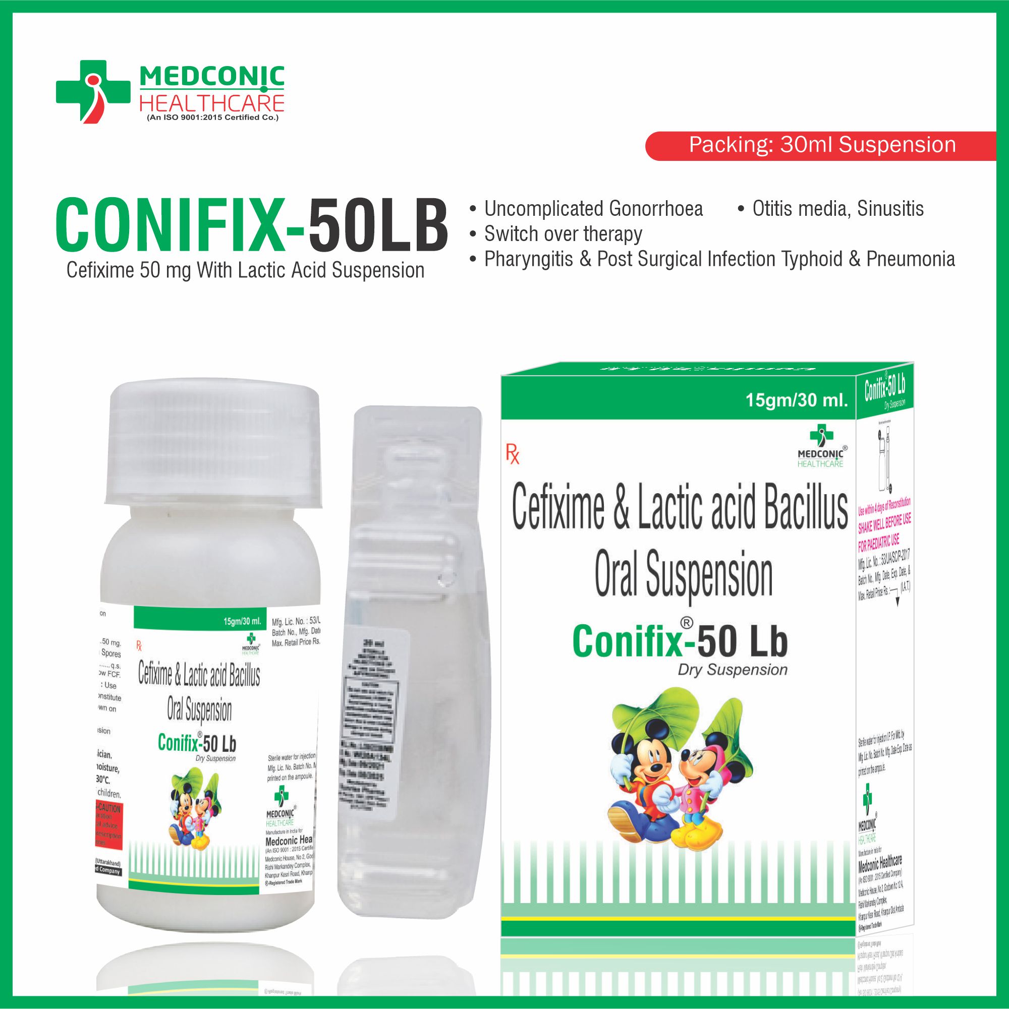 CompositionCEFIXIME 50 MG/5 ML (WITH DISTILLED WATER) WITH LACTIC ACIDPackage Size30 ML