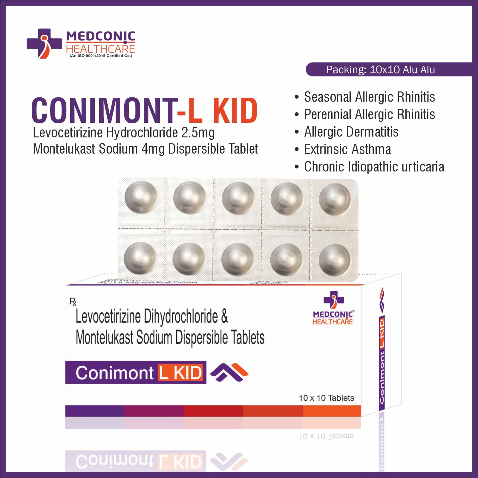 CompositionMONTELUKAST SODIUM 4 MG LEVOCETIRIZINE 2.5 MG (AA)Package Size10*10
