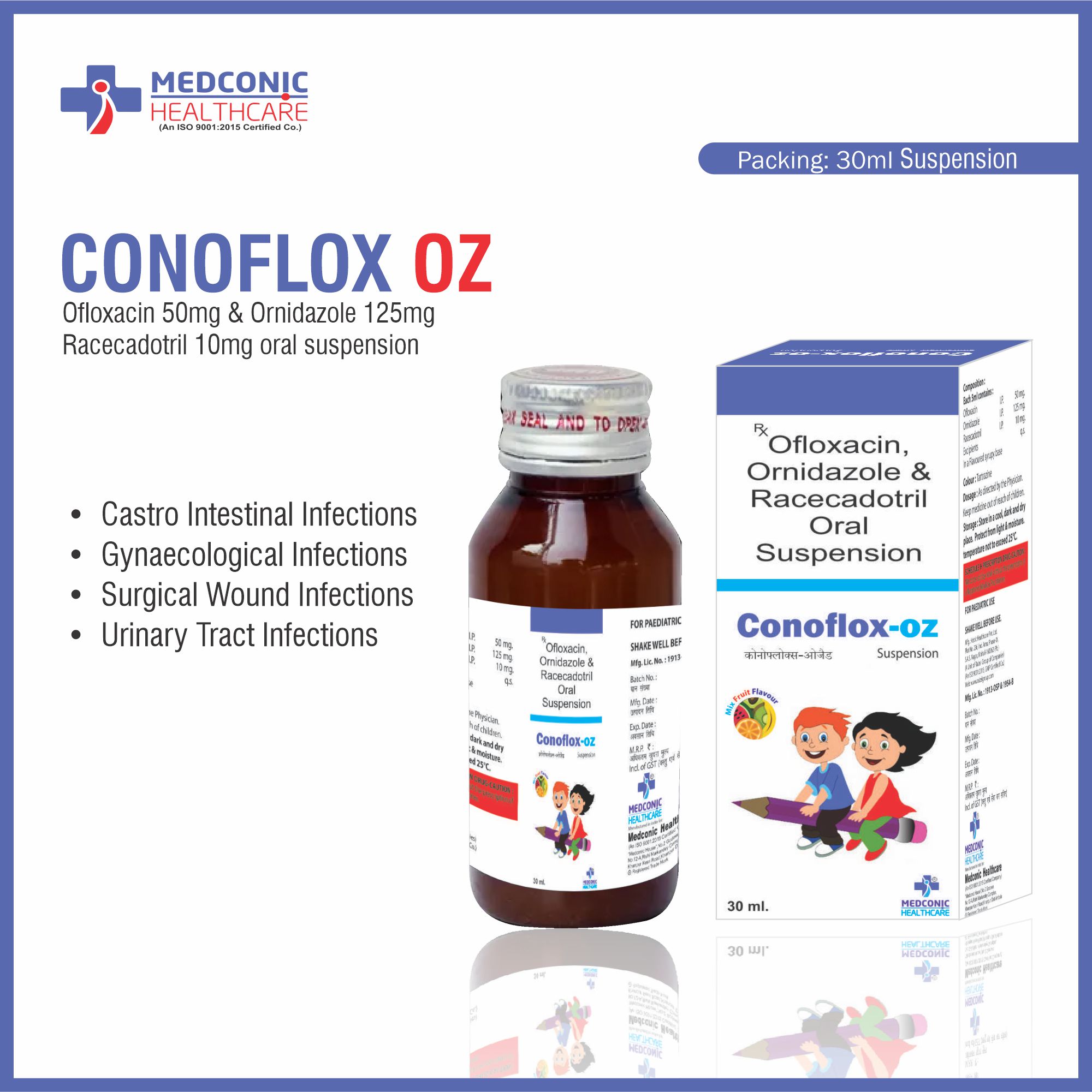 Ofloxacin 50mp & Ornidazole 125mg Racecadotril 10mp oral suspension